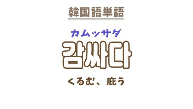 単語・慣用句 韓国語【감싸다】を覚える! 2022年3月19日 makumaku 감싸다カムッサダ くるむ、庇う〔動詞〕 一緒に覚える! 【감싸이다】:くるまれる〔動詞〕 【감싸주다】:庇ってやる〔動詞〕 【감싸다】の …