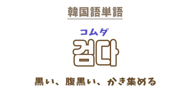 単語・慣用句 韓国語【검다】を覚える! 2022年3月19日 makumaku 검다コムダ (色が)黒い〔形容詞〕(散らばっているものを)掻き集める〔動詞〕 【검다】の解説 【검다】の日本語訳。 〔形容詞〕(色が)黒い、腹黒い …