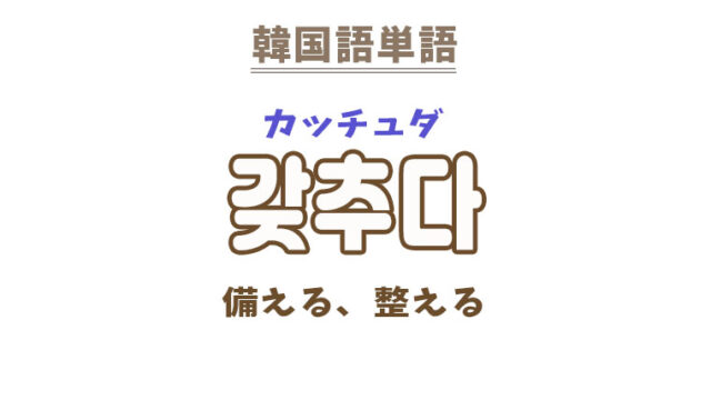 単語・慣用句 韓国語【갖추다】を覚える! 2022年3月20日 makumaku 갖추다カッチュダ 備える、整える〔動詞〕 【갖추다】の解説 【갖추다】の日本語訳。 備える、整える、取り揃える 姿勢を直す …