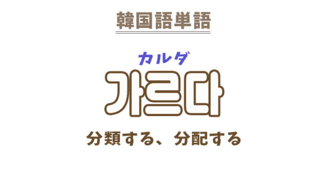単語・慣用句 韓国語【가르다】を覚える! 2022年3月22日 makumaku 가르다カルダ 分類する、分配する〔動詞〕 一緒に覚える! 【가름】:(仕事を)分けること〔名詞〕 【가르다】の解説 【가르다】の日本語訳 …