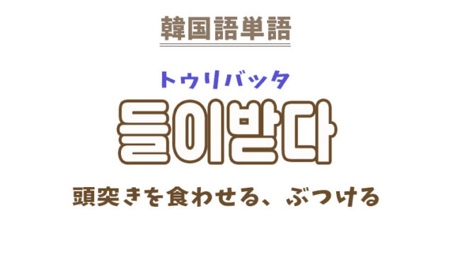 単語・慣用句 韓国語【들이받다】を覚える! 2022年3月19日 makumaku 들이받다トゥリバッタ 頭突きを食わせる、ぶつける〔動詞〕 【들이받다】の解説 【들이받다】の日本語訳 頭突きを食わせる、(頭・角で)突く 衝突 …