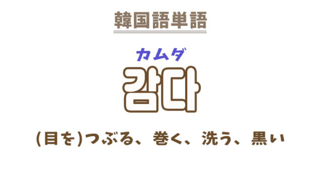 単語・慣用句 韓国語【감다】を覚える! 2022年3月19日 makumaku 감다カムダ (目を)つぶる、巻く、(髪を)洗う〔動詞〕(色が)黒い〔形容詞〕 【감다】の解説 【감다】の日本語訳 〔動詞〕(目を)つぶる、(目を)閉 …
