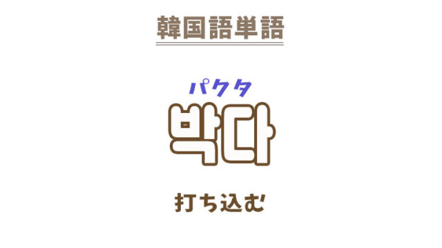 単語・慣用句 韓国語【박다】を覚える! 2024年4月29日 makumaku 박다パクタ 打ち込む〔動詞〕 一緒に覚える! 【박아내다】:刷り込む〔動詞〕 【박다】の解説 【박다】の日本語訳 打ち込む、打つ …