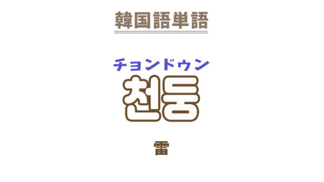 単語・慣用句 韓国語【천둥】を覚える! 2024年2月26日 makumaku 천둥チョンドゥン 雷〔名詞〕 一緒に覚える! 【천둥같이】:雷のように〔副詞〕 【천둥 벌거숭이】:無鉄砲〔名詞〕 【천둥】の解説 …