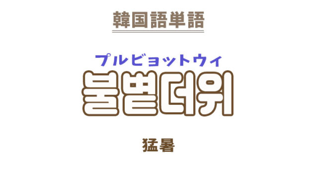 単語・慣用句 韓国語【불볕더위】を覚える! 2024年1月18日 makumaku 불볕더위プルビョットウィ 猛暑〔名詞〕 一緒に覚える! 【더위】:暑さ〔名詞〕 【불볕】:かんかんに照りつける真夏の日差し〔名詞〕 【불 …