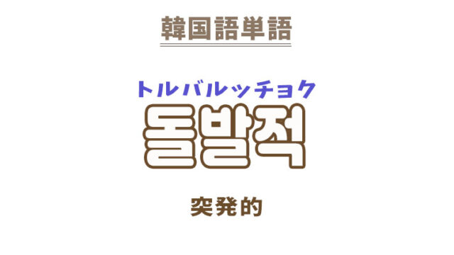 単語・慣用句 韓国語【돌발적】を覚える! 2023年10月25日 makumaku 돌발적トルバルッチョク 突発的〔名詞〕 一緒に覚える! 【돌발】:突発〔名詞〕 【돌발하다】:突発する〔動詞〕 【돌발적】の解説 …