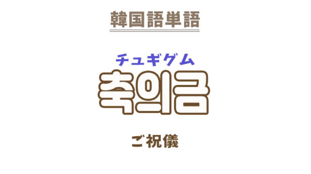 単語・慣用句 韓国語【축의금】を覚える! 2023年6月15日 makumaku 축의금チュギグム ご祝儀〔名詞〕 一緒に覚える! 【축의】:祝儀〔名詞〕 【축의금】の解説 【축의금】の日本語訳。 お祝い金、 …