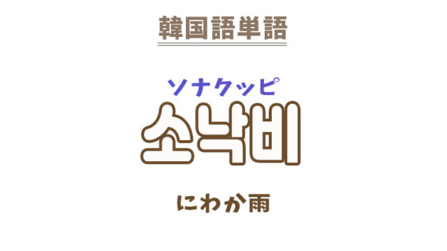 単語・慣用句 韓国語【소낙비】を覚える! 2023年5月10日 makumaku 소낙비ソナクッピ にわか雨〔名詞〕 一緒に覚える! 【소낙비구름】:夕立雲〔名詞〕 【소낙비】の解説 【소낙비】の日本語訳。 …