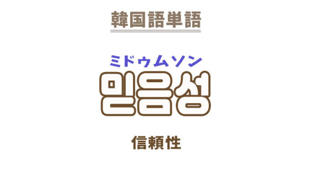 単語・慣用句 韓国語【믿음성】を覚える! 2023年3月26日 makumaku 믿음성ミドゥムソン 信頼性〔名詞〕 一緒に覚える! 【믿음】:信頼〔名詞〕 【믿음성스럽다】:頼もしく見える〔形容詞〕 【믿음성】の解説 …