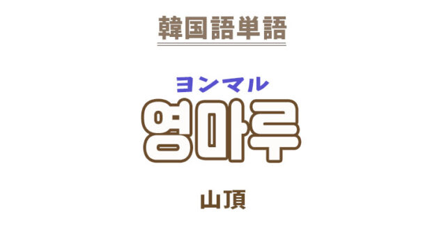 単語・慣用句 韓国語【영마루】を覚える! 2022年12月31日 makumaku 영마루ヨンマル 山頂〔名詞〕 【영마루】の解説 【영마루】の日本語訳。 山頂、峠の頂 【영마루:山頂】 【영마루:山頂】の類 …