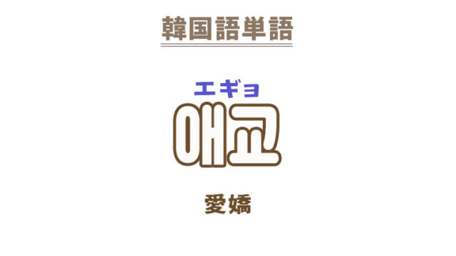 単語・慣用句 韓国語【애교】を覚える! 2022年12月27日 makumaku 애교エギョ 愛嬌〔名詞〕 一緒に覚える! 【애교스럽다】:愛嬌がある〔形容詞〕 【애교】の解説 【애교】の日本語訳。 愛嬌、愛 …