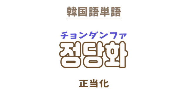 単語・慣用句 韓国語【정당화】を覚える! 2022年12月8日 makumaku 정당화チョンダンファ 正当化〔名詞〕 一緒に覚える! 【정당】:正当〔名詞〕 【정당화하다】:正当化する〔動詞〕 【정당화】の解説 …