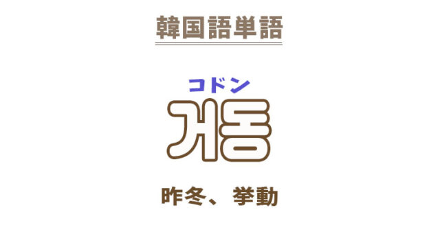 単語・慣用句 韓国語【거동】を覚える! 2022年12月5日 makumaku 거동コドン 昨冬、挙動〔名詞〕 【거동】の解説 【거동】の日本語訳。 昨冬、去冬、去年の冬 挙動、立ち居振る舞い、素振り ① …