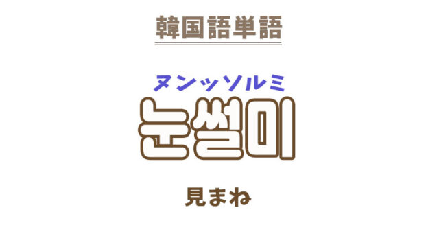 単語・慣用句 韓国語【눈썰미】を覚える! 2022年12月3日 makumaku 눈썰미ヌンッソルミ 見まね〔名詞〕 【눈썰미】の解説 【눈썰미】の日本語訳。 見まね、見よう見まね 【눈썰미:見まね】 【눈 …