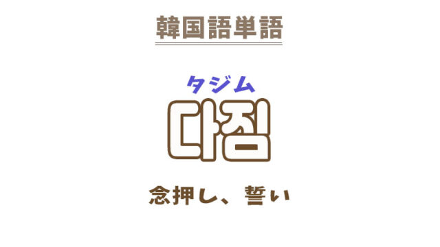 単語・慣用句 韓国語【다짐】を覚える! 2022年12月2日 makumaku 다짐タジム 念押し、誓い〔名詞〕 一緒に覚える! 【다지다】:念を押す〔動詞〕 【다짐장】:念書〔名詞〕 【다짐하다】:念を押す〔動詞〕 【억 …