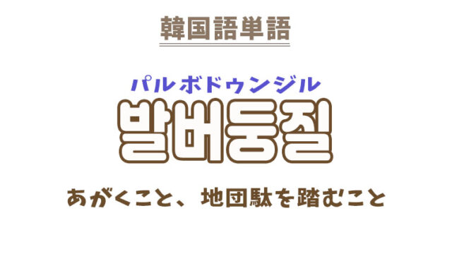 単語・慣用句 韓国語【발버둥질】を覚える! 2022年10月4日 makumaku 발버둥질パルボドゥンジル あがくこと、地団駄を踏むこと〔名詞〕 一緒に覚える! 【발버둥질하다】:あがく〔動詞〕 【발버둥질】の解説 【 …