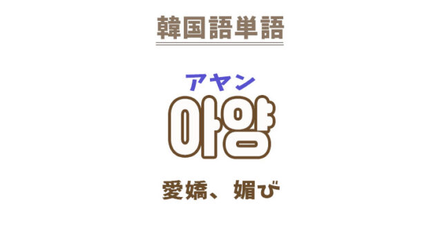単語・慣用句 韓国語【아양】を覚える! 2022年10月4日 makumaku 아양アヤン 愛嬌、媚び〔名詞〕 一緒に覚える! 【아양스럽다】:愛嬌がある〔形容詞〕 【아양스레】:愛嬌たっぷりに〔副詞〕 【아양】の解 …