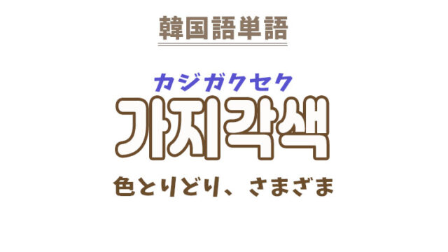 単語・慣用句 韓国語【가지각색】を覚える! 2022年8月5日 makumaku 가지각색カジガクセク 色とりどり、様々〔名詞〕 【가지각색】の解説 【가지각색】の日本語訳。 色とりどり、様々 【가지각색:色とり …