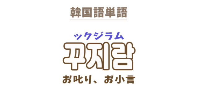 単語・慣用句 韓国語【꾸지람】を覚える! 2022年8月2日 makumaku 꾸지람ックジラム お叱り、お小言、叱責〔名詞〕 一緒に覚える! 【꾸지람하다】:叱る〔動詞〕 【꾸지람】の解説 【꾸지람】の日本語訳。 …