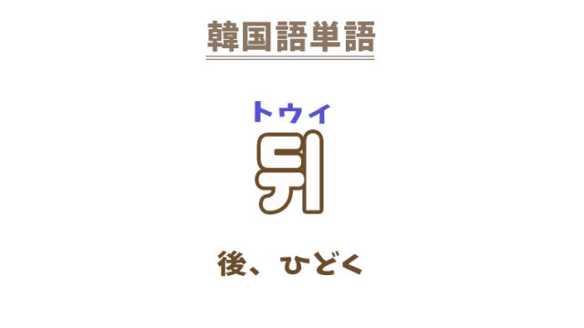 単語・慣用句 韓国語【뒤】を覚える! 2024年4月21日 makumaku 뒤トゥィ 後〔名詞〕ひどく〔接頭語〕 【뒤】の解説 【뒤】の日本語訳 〔名詞〕(空間的に)後、後ろ、後方(時間的に)後あと、後のち、後日後継ぎ後の事 …