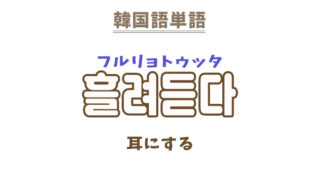 単語・慣用句 韓国語【얻어듣다】を覚える! makumaku 2023年1月22日 / 2023年4月21日 얻어듣다オドトゥッタ 人づてに聞く〔動詞〕 一緒に覚える! 【얻다】:貰う〔動詞〕 Contents 【얻어듣다】の解説【얻어듣다:人づてに聞く】【얻어듣다:人づてに聞く】の類義語【얻어듣다:人づてに聞く】の慣用句【얻어듣다:人づてに聞く】を使った例文【얻어듣다】の解説 【얻어듣다】の日本語訳。 人づてに聞く、小耳に挟む、聞き込む 【얻어듣다:人づてに聞く】 【얻어듣다:人づてに聞く】の類義語 흘려듣다:耳にする〔動詞〕 【얻어듣다:人づてに聞く】の慣用句 얻어들은 풍월 ⇒拾い聞きした知識/耳学問 【얻어듣다:人づてに聞く】を使った例文 動詞